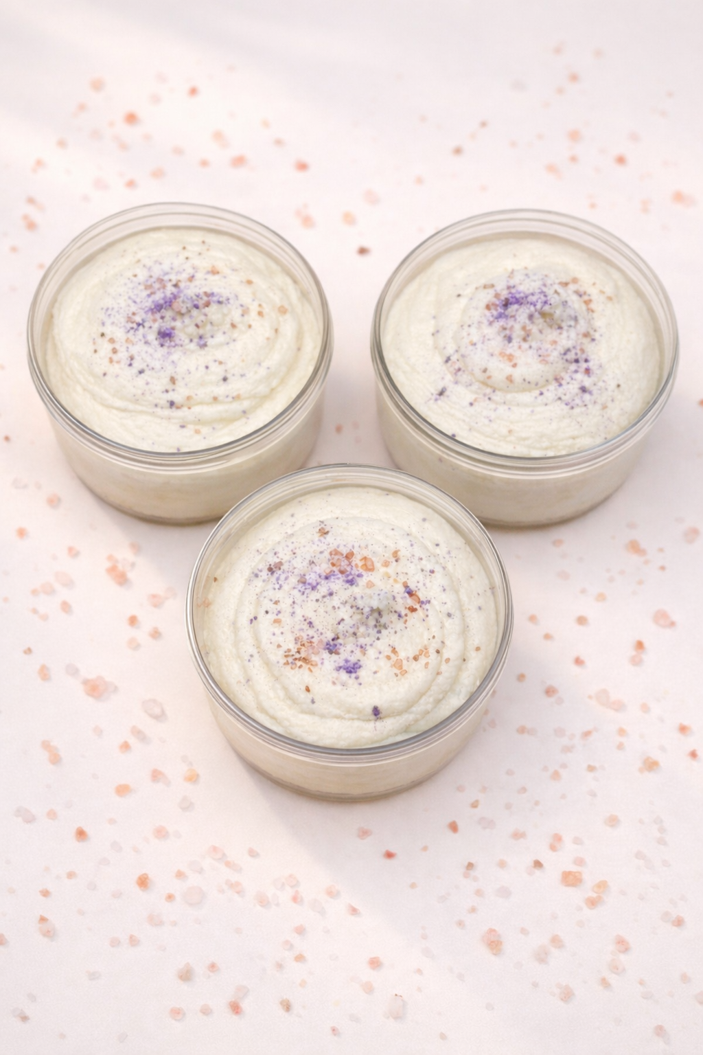 May contain one or more of the following: Jojoba Beads, Pink Mineral Salt, French Grey Salt, Black Lava Salt, Sea Salt, Blue Poppy Seeds, Alaea Salt, Mica